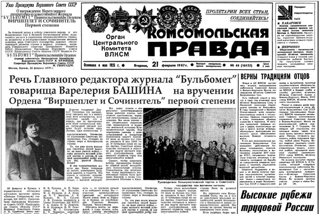 журнал "Бульбомет" награжден Орденом "Виршеплет и Сочинитель" первой степени с вручением Гл. Редактору почетного знака "Золотая растопырка". Выступление Редактора с